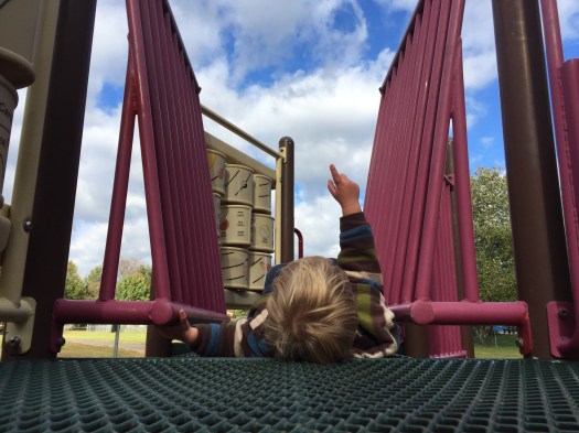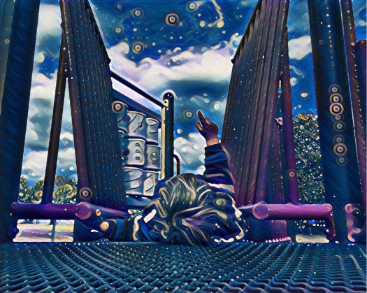 I started with this photo of my 2 1/2 year old grandson, looking up in wonder at the clouds.
