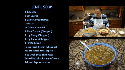 A friend who loves YouTube sent me a video of Gina Petitti, “The Italian Grandmother,” cooking lentil soup. Gina is charming, and reminded me of my Ukrainian Baba, so I had to follow along and try her recipe.