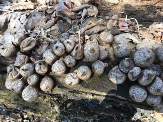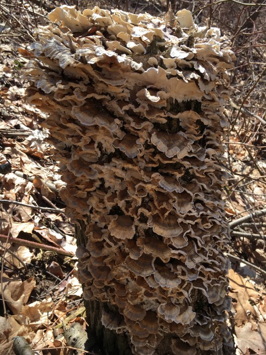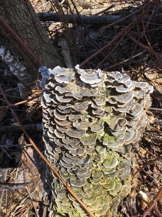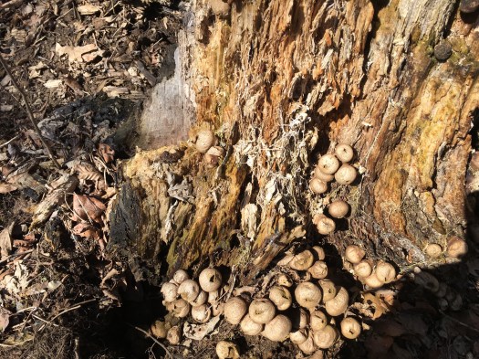 Since it was sunny and warmish, we walked a nature trail a friend has been telling me about. She (my dog, not my friend) ran and rolled in foul things, and I took pictures of mushrooms.